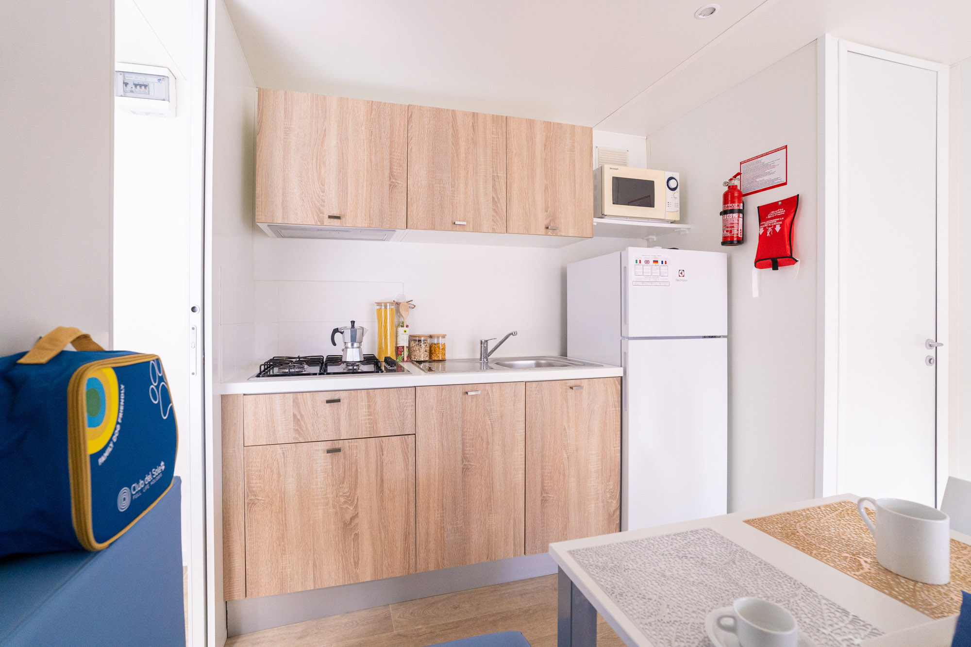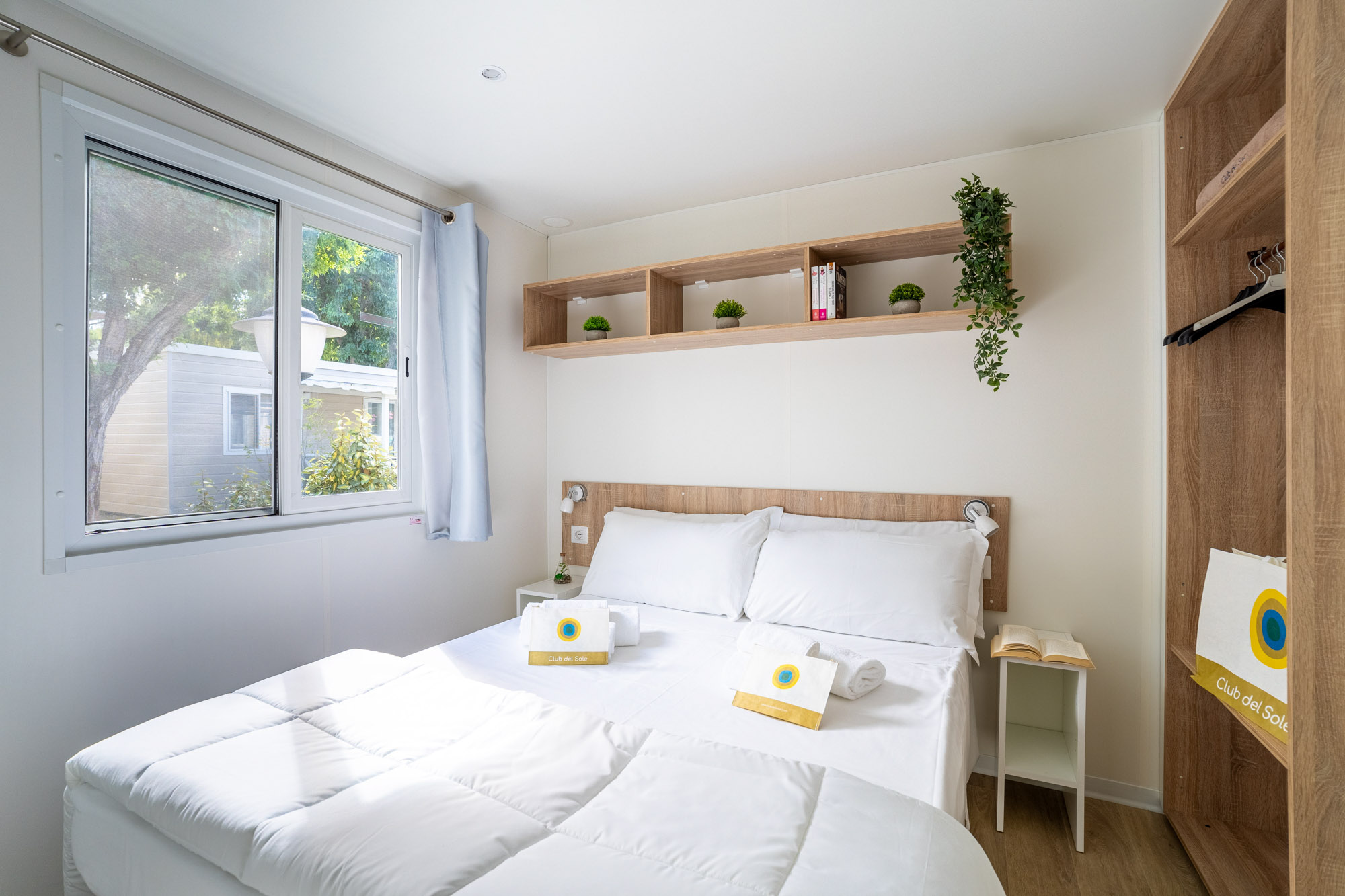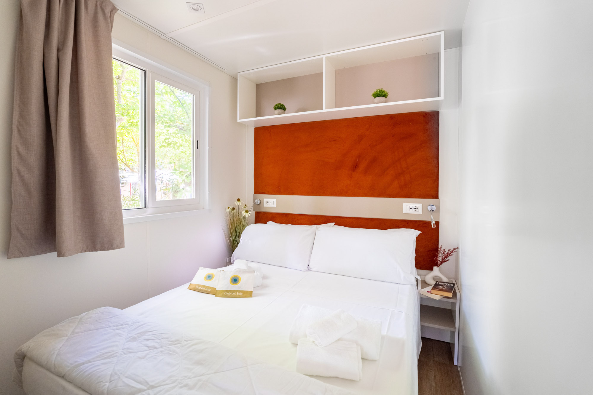 Eine funktionelle Unterkunft in ruhiger Lage, aber in unmittelbarer Nähe zu allen Dienstleistungen des Feriendorfes.