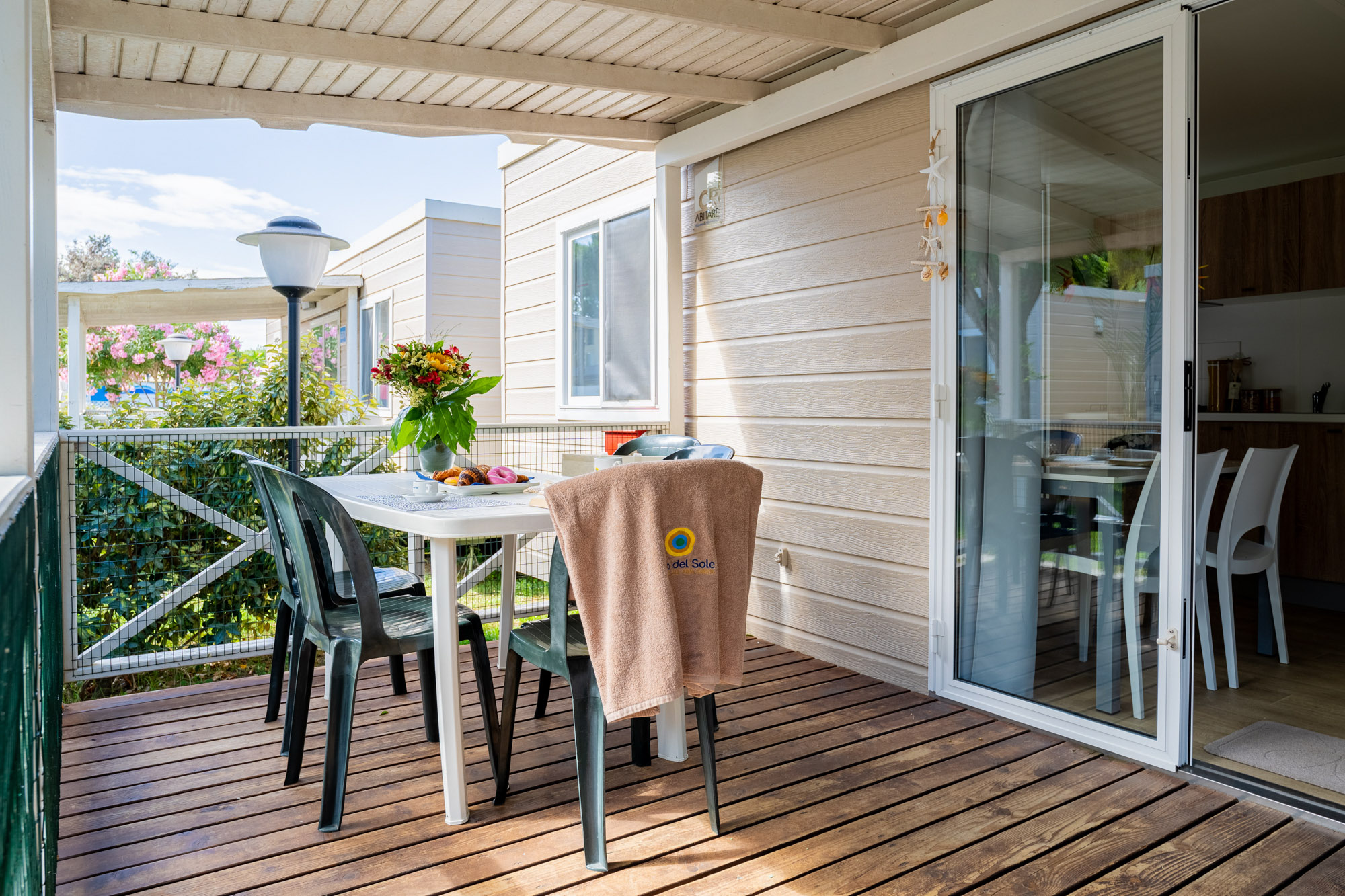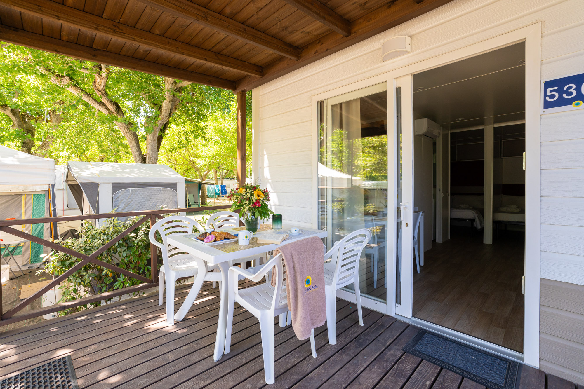 Barrierefreie Unterkunft mit einer großen Veranda, für jede Familie geeignet.