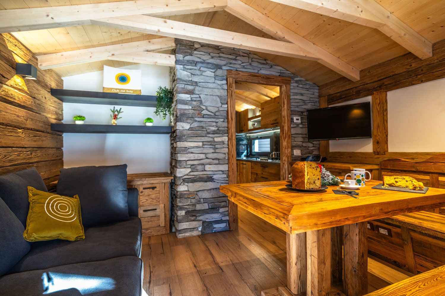 A wooden chalet with a classic feeling, for a relaxing holiday in the mountains.