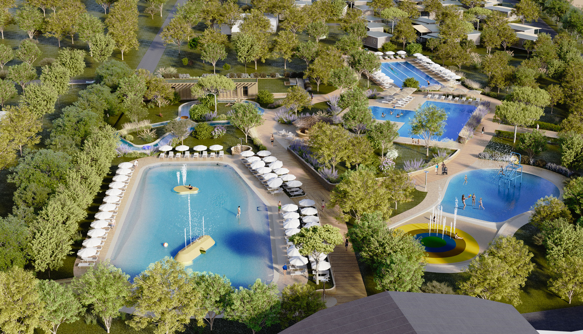 “Vacanza” significa anche avere tutto quello che ti piace a portata di mano. A pochi passi dalla tua lodge ti aspetta il nostro parco acquatico: puoi rilassarti sui lettini dell’area solarium, lasciarti cullare dalla corrente della piscina river, recuperare le energie nella piscina benessere con getti massaggianti oppure nuotare nella piscina pensata per i più sportivi. I bambini vivranno momenti indimenticabili tra la laguna con scivoli e lo spray park con giochi d’acqua interattivi.