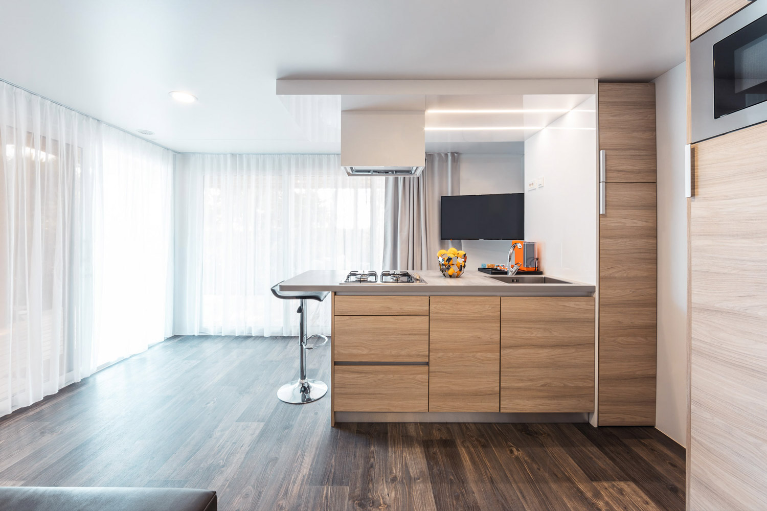 Lasciati ispirare dal tuo nuovo habitat e scopri il luxury caravan Discovery: un design unico e una cura dei dettagli senza compromessi, per un’esperienza di soggiorno elegante, sorprendente e innovativa. Al suo interno troverai zona notte, soggiorno, bagno, cucina e un deck in legno verandato esterno per goderti il fresco della sera mentre ammiri il cielo stellato.