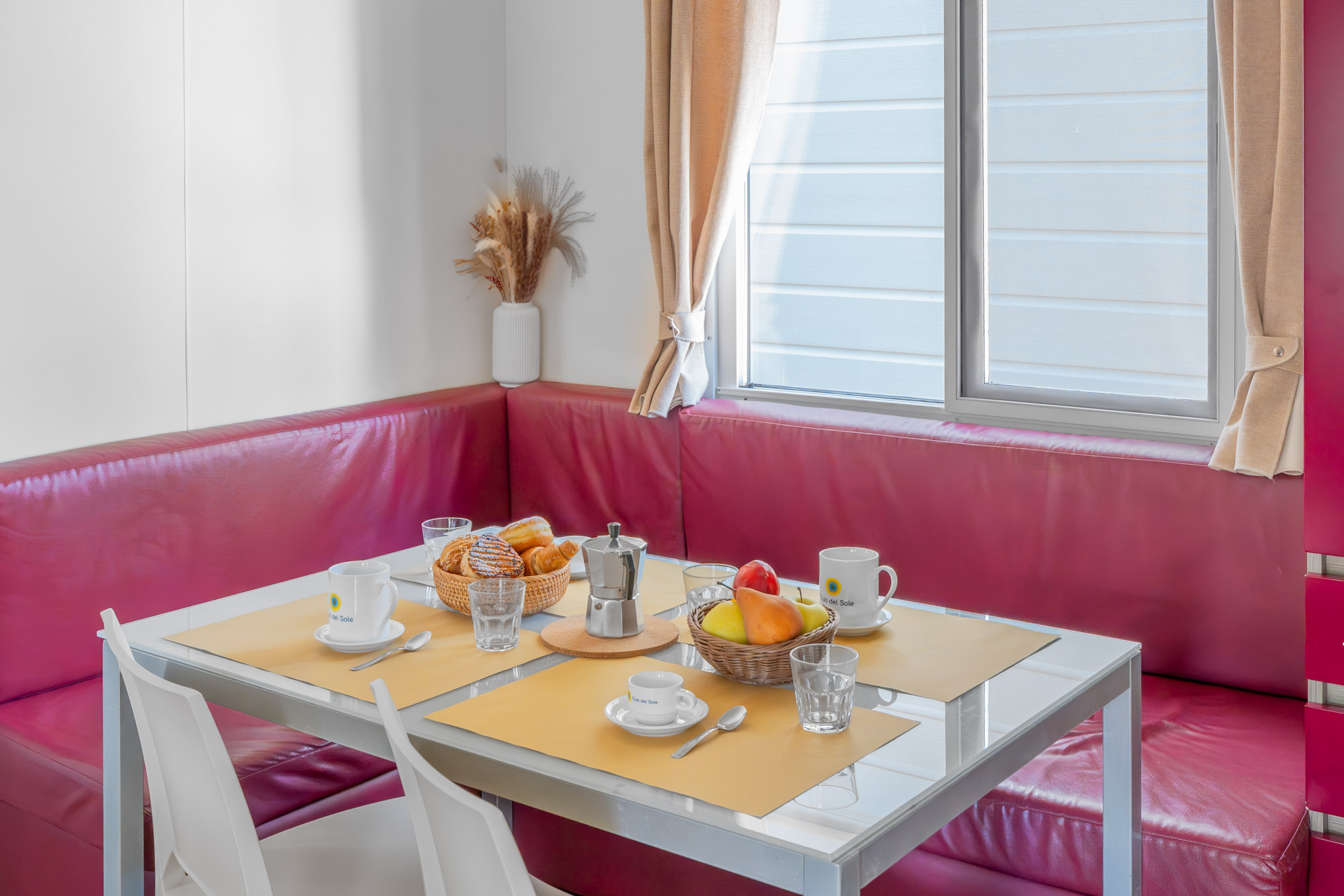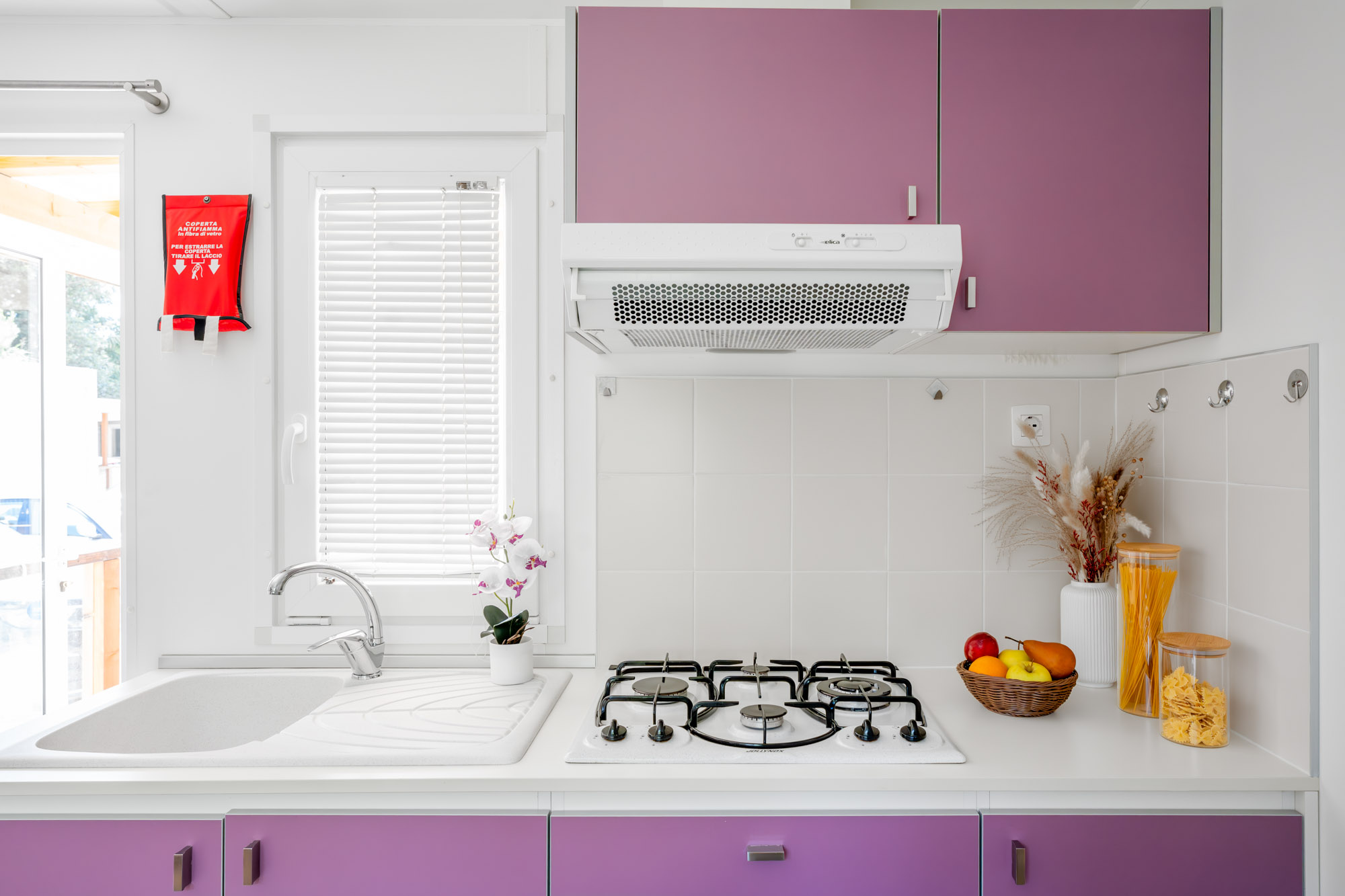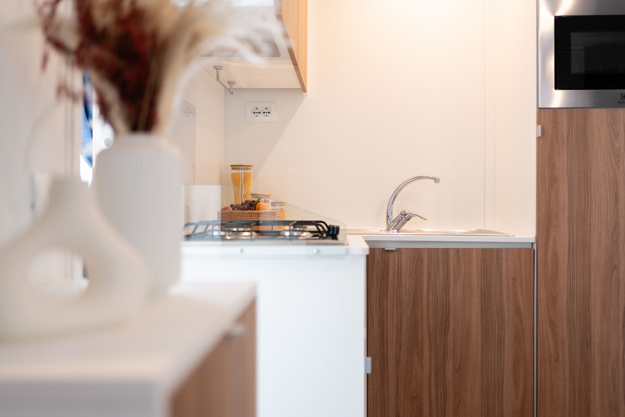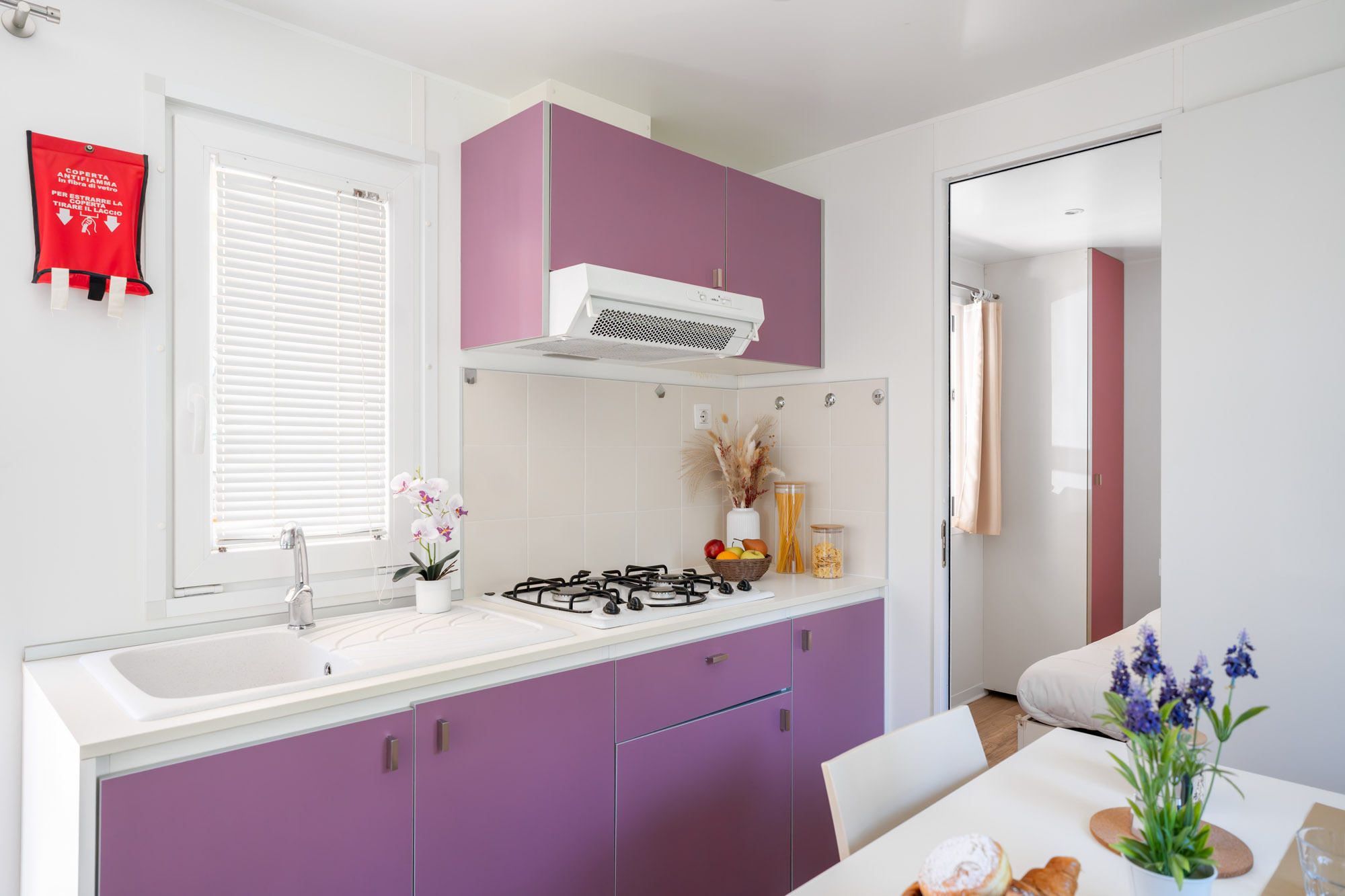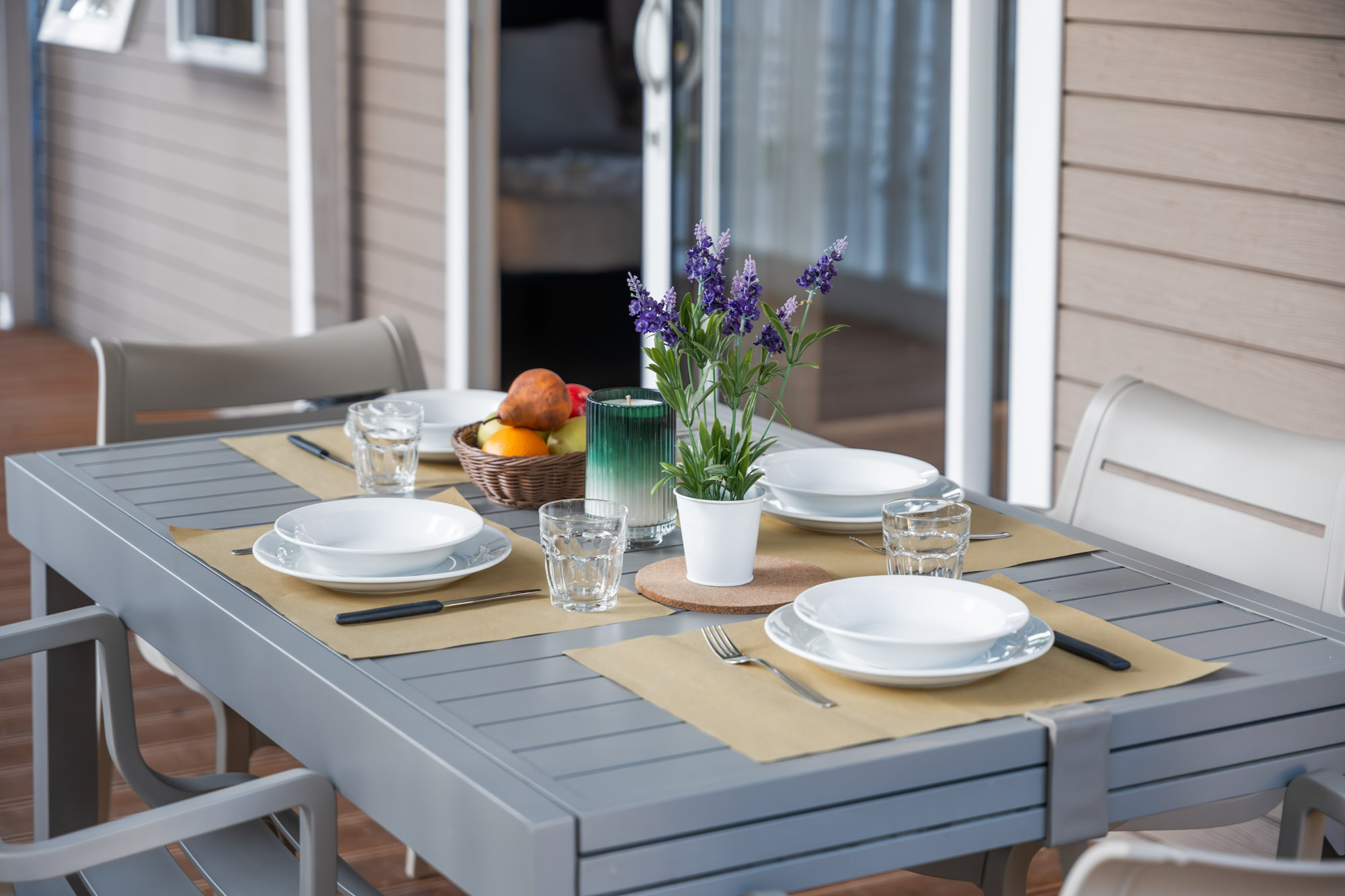 Komfort domku kempingowego w otoczeniu zieleni lasu sosnowego, z 2 sypialniami. Doskonałe rozwiązanie dla rodzin z dziećmi.